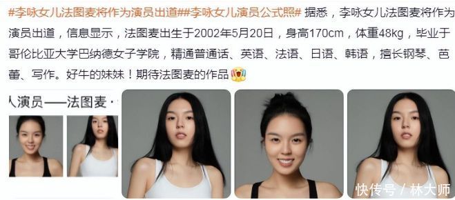 7月10日,业内东谈主士流露,李咏男儿法图麦将以演员身份庄重出谈!阐述公开辛勤自大法图麦身高170cm,体重48kg,这种身高比例,异常稳妥大众对文娱圈女明星的条目!